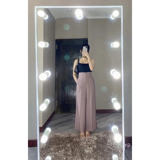 Celana kulot ini menggunakan bahan dolce yang lembut dan jatuh bagus, cocok dipakai untuk kerja kantor maupun aktivitas sehari-hari. Desain highwaistnya bikin postur terlihat lebih rapi tanpa terasa ketat di area perut.